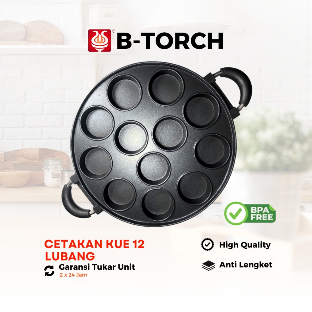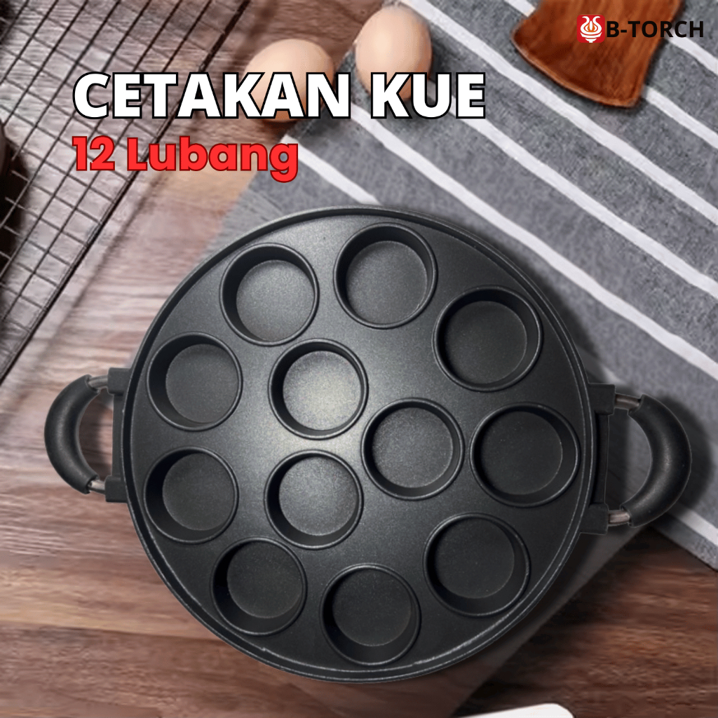 B-TORCH Teflon Aluminium Cetakan Kue Cetakan Telur 12 Lubang Anti Lengket