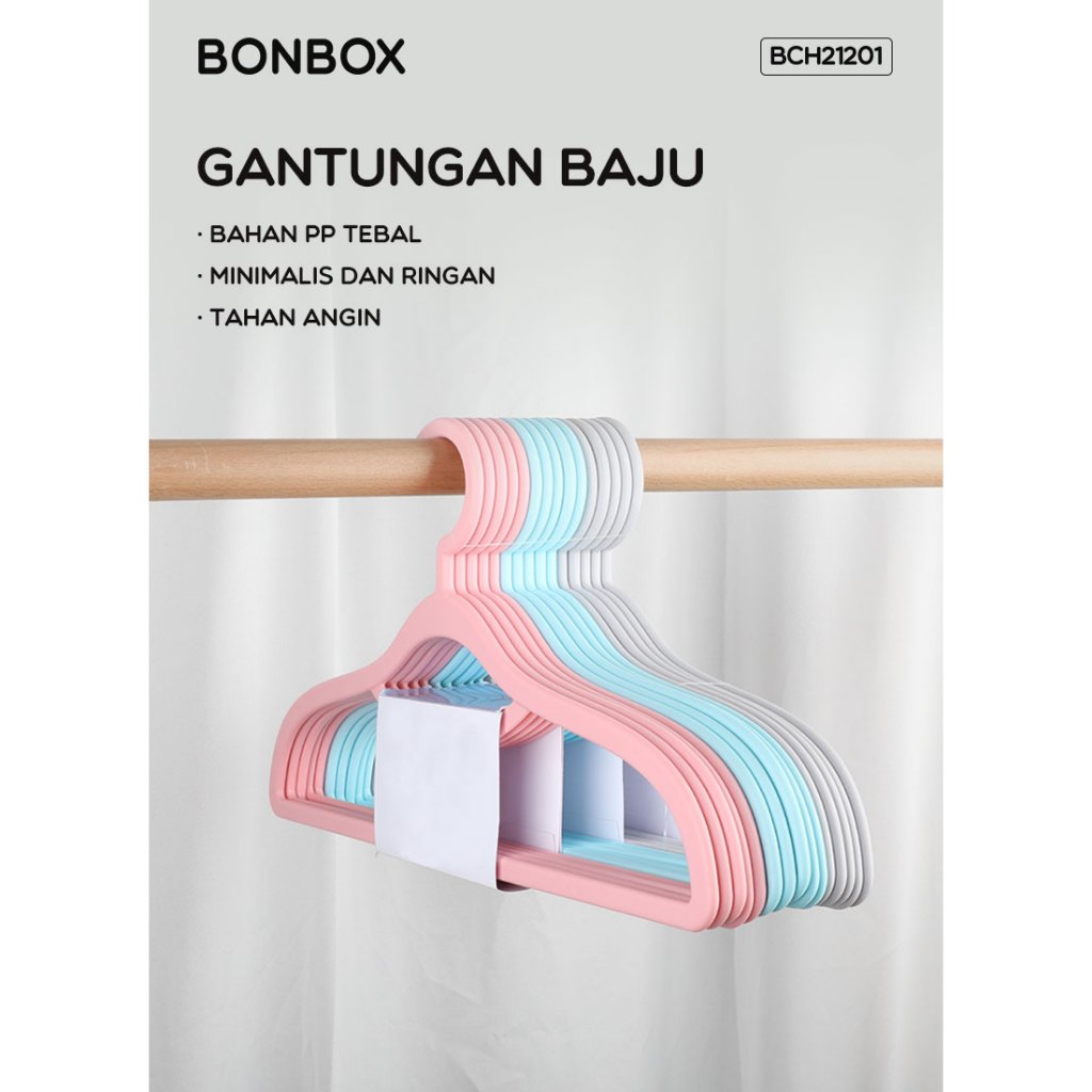 Bonbox Bch10 Gantungan Baju 10Pcs / 6 Pcs Hanger Plastik Anti Slip Simple Dan Ringan Gantungan Kering Dan Basah