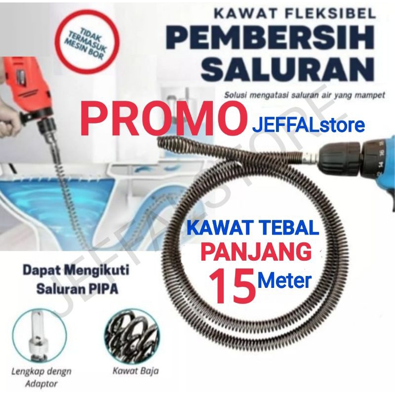 Kawat Pembersih Saluran Pipa Mampet Dengan Adaptor Bor Panjang 20 Meter, 15 Meter dan 10 Meter