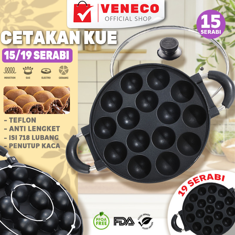 Cetakan takoyaki 15 Lubang + tutup kaca / Cetakan Takoyaki 19 Lubang Cekung