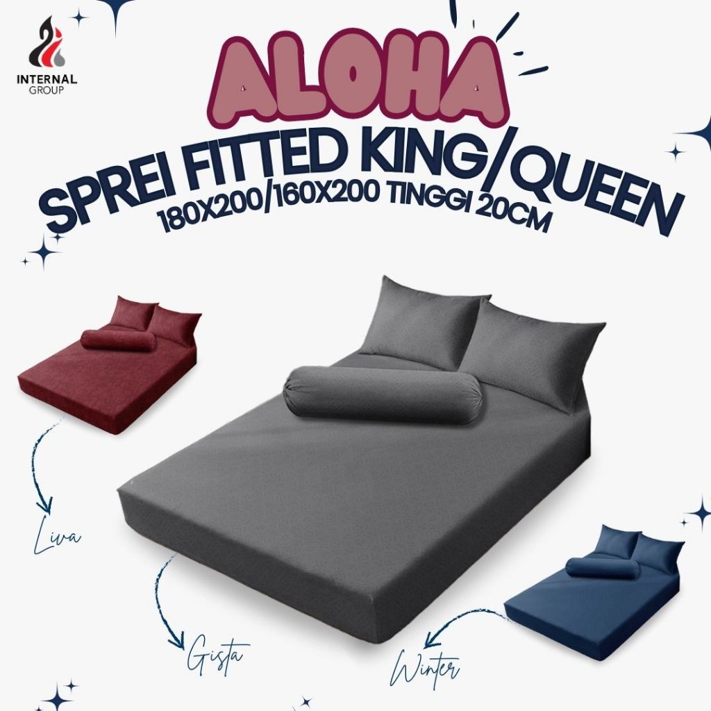 Aloha Sprei Fitted T20 / T25 Queen / King Tinggi 20 / Tinggi 25 Polos Embossed Official Pil