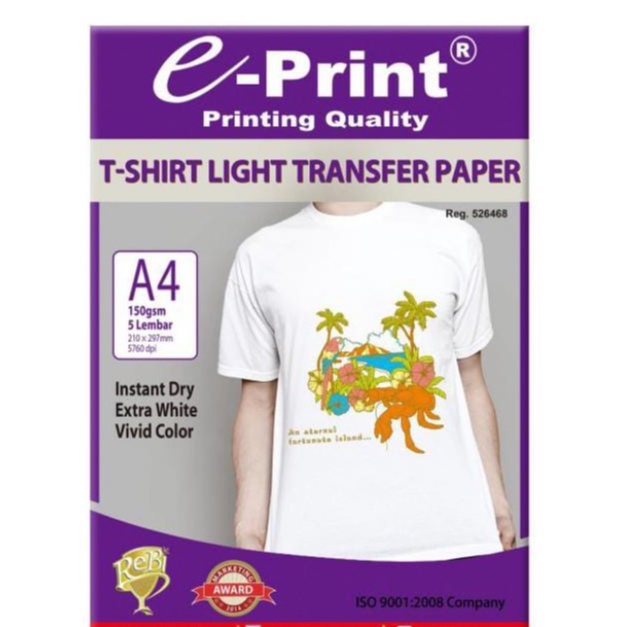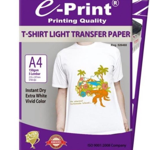 e-Print Light T-Shirt Transfer Paper A4 - Kertas Print Sablon 5 Lembar