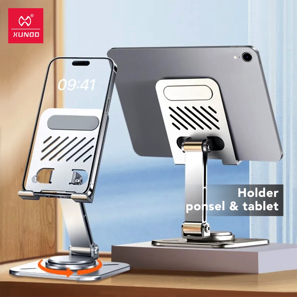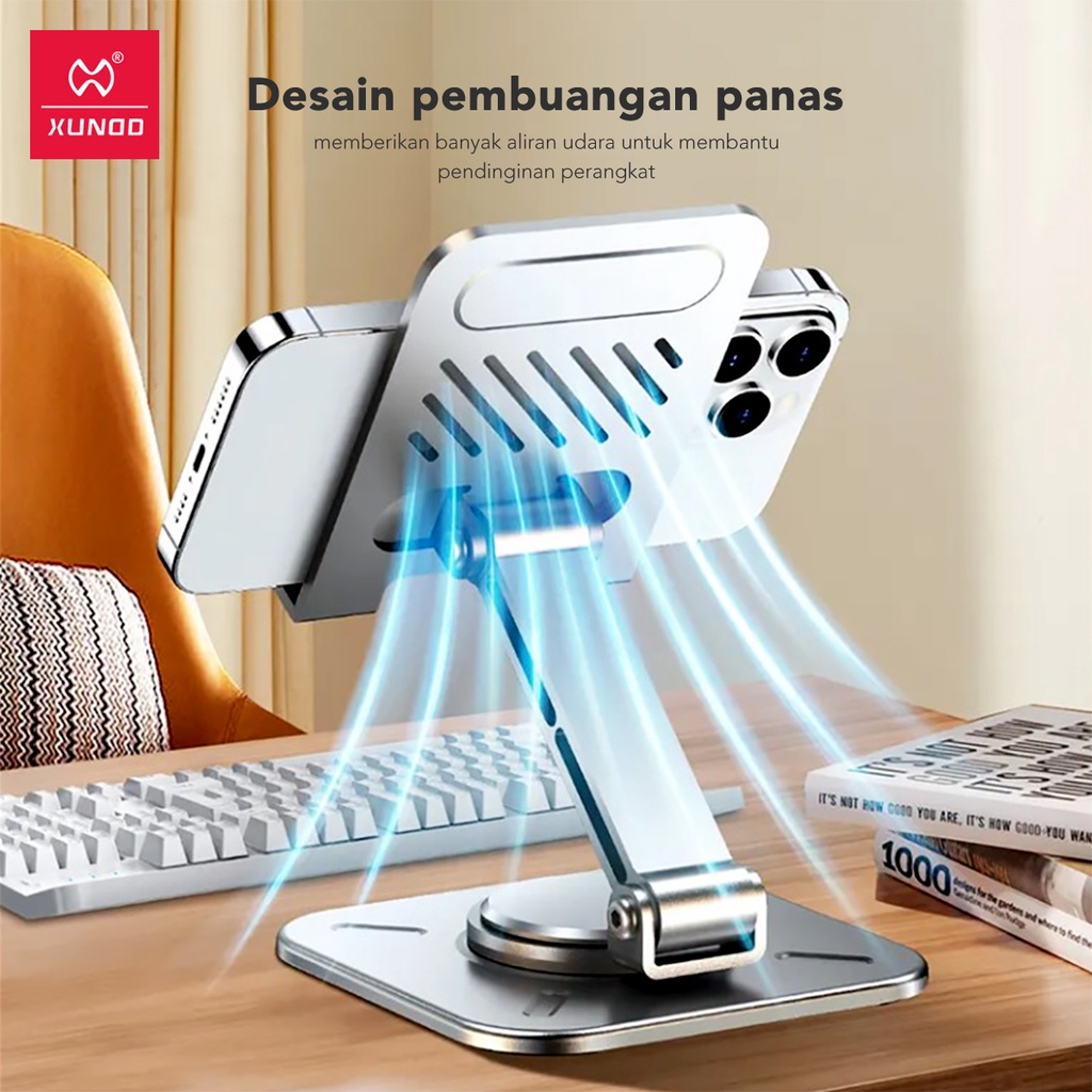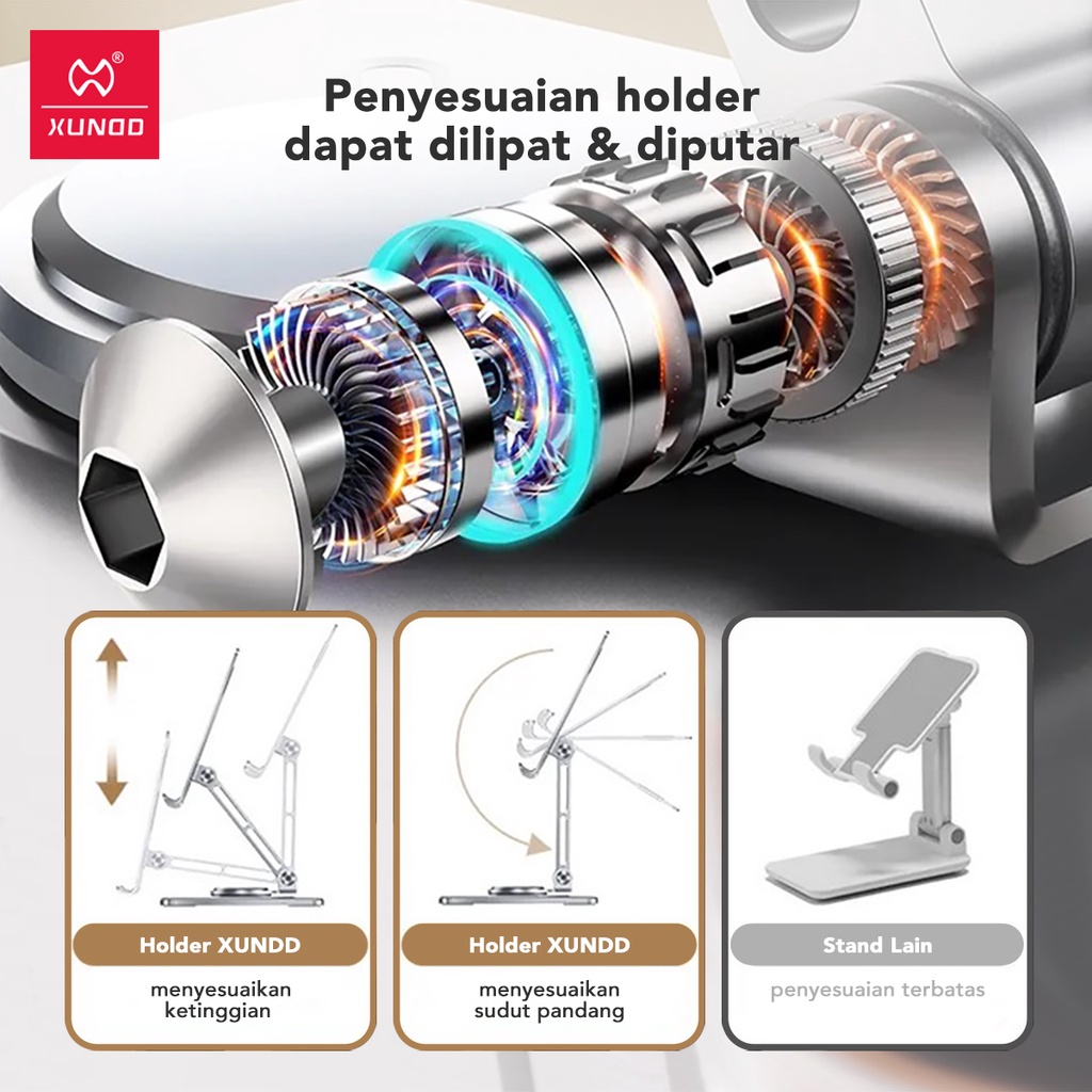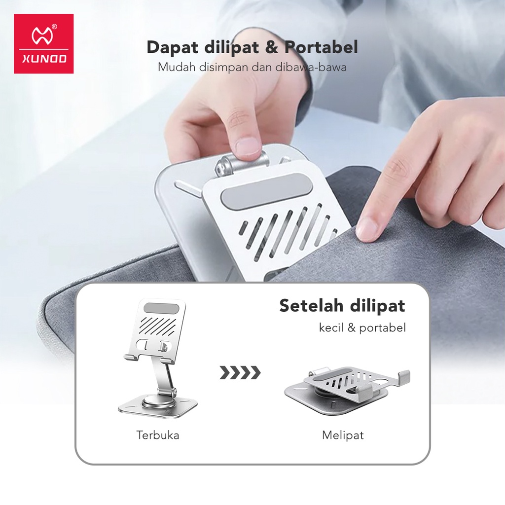 Xundd Phone Stand Holder Foldable Dudukan Hp Metal Putar 360 Derajat Rotation Biaxial Aluminium / Universal Handphone Li