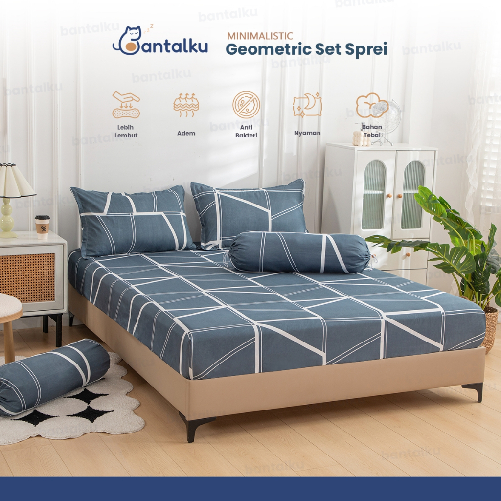 Bantalku Set Sprei Sarung Bantal Guling Motif Geometris 120 160 180X200 Set Sprei Motif Kotak Kotak
