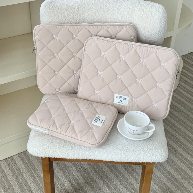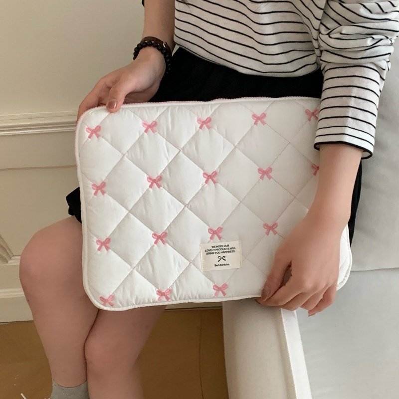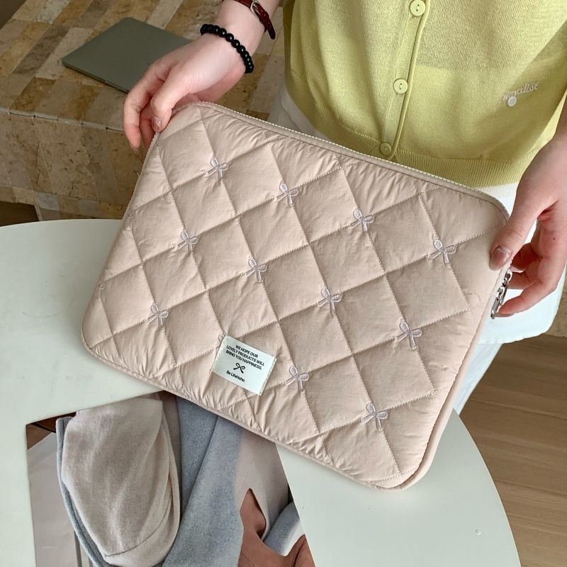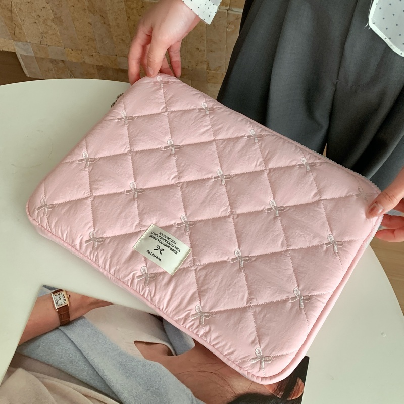 Secondlemon Tas Laptop Tahan Air Dan Tahan Guncangan Busur Sulaman Kapas Berlapis Cocok Untuk 10 11 13 14 15 15.6Inch