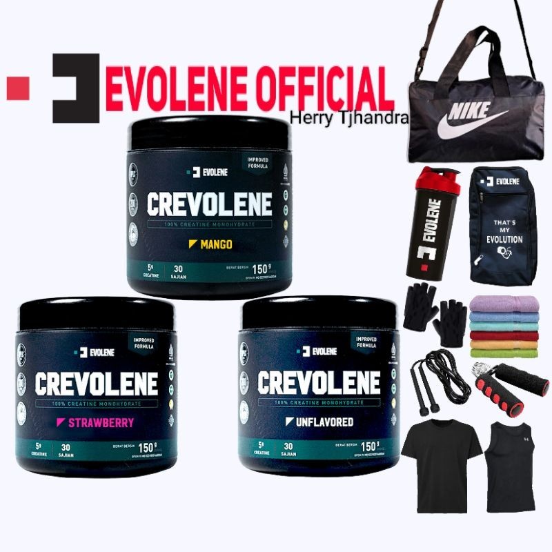 Crevolene 300Gram Creatine Monohydrate Evolene & Prevo 25 Sachet Pre Workout Evolene Suplemen Fitness