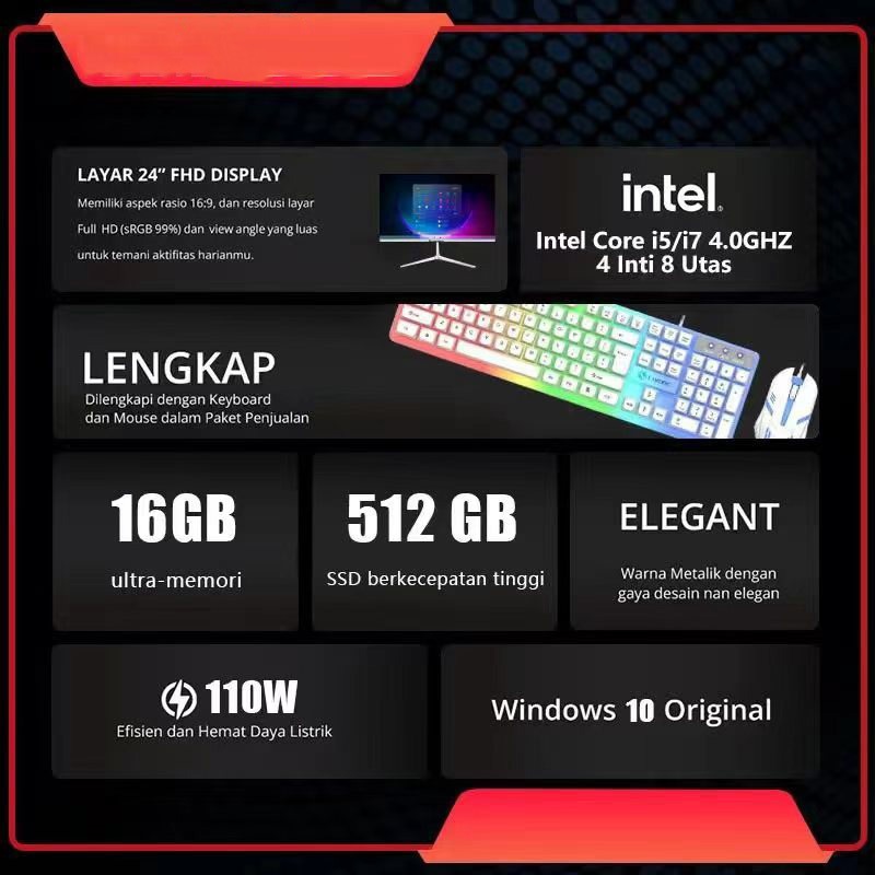 acer Komputer Full PC All-in-One 19‘ 22’ 24‘ 27“ Baru Terbaru HD Super Tipis Intel Core i3/i5/i7 Untuk Rumah, Belajar, K
