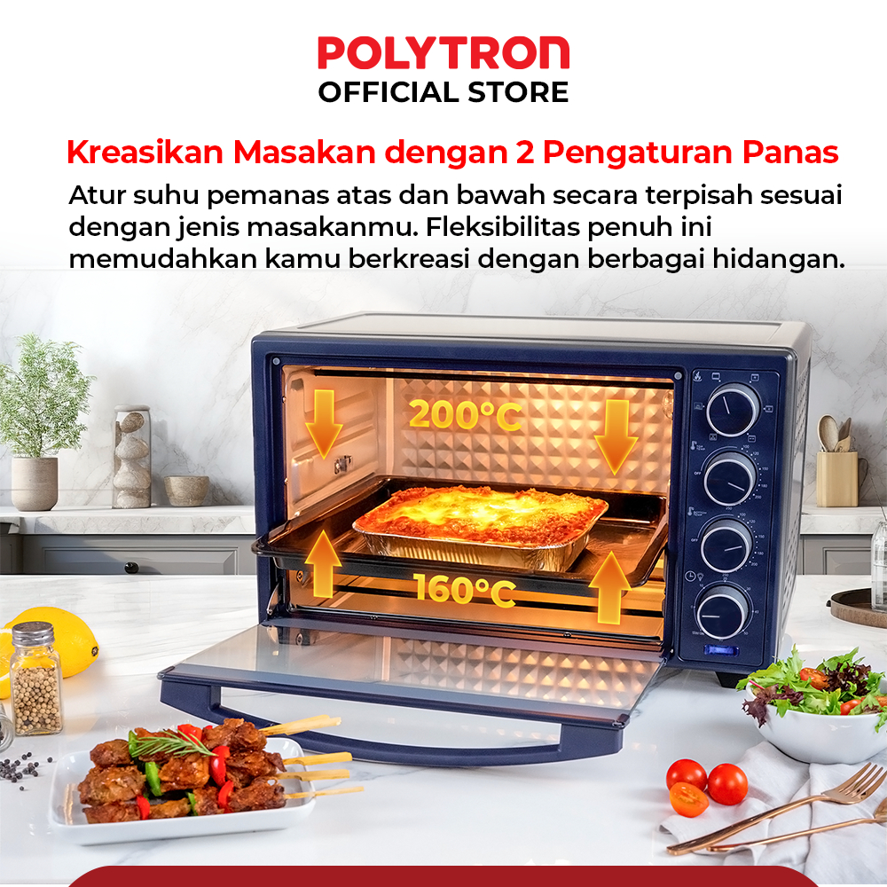 Oven Listrik Low Watt POLYTRON Kitchenmate 33 Liter - PEO 33B1B / PEO 33B2B / PEO 33B2W