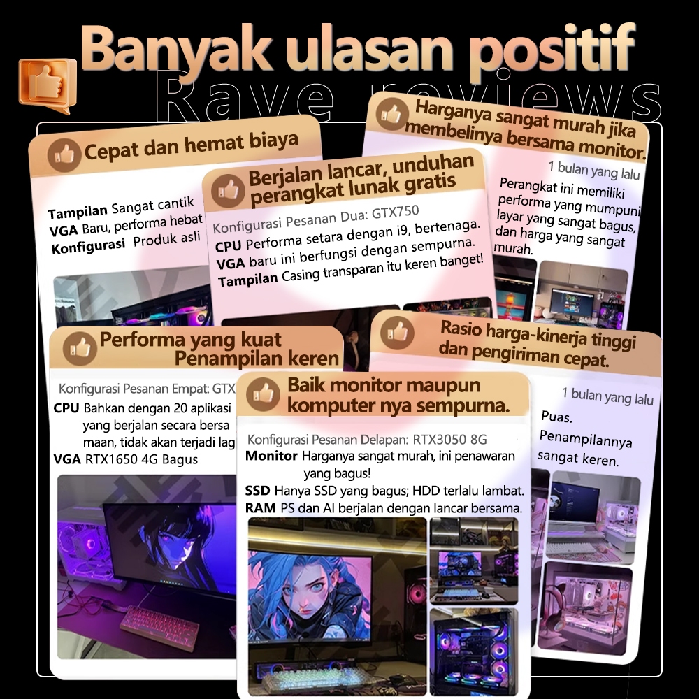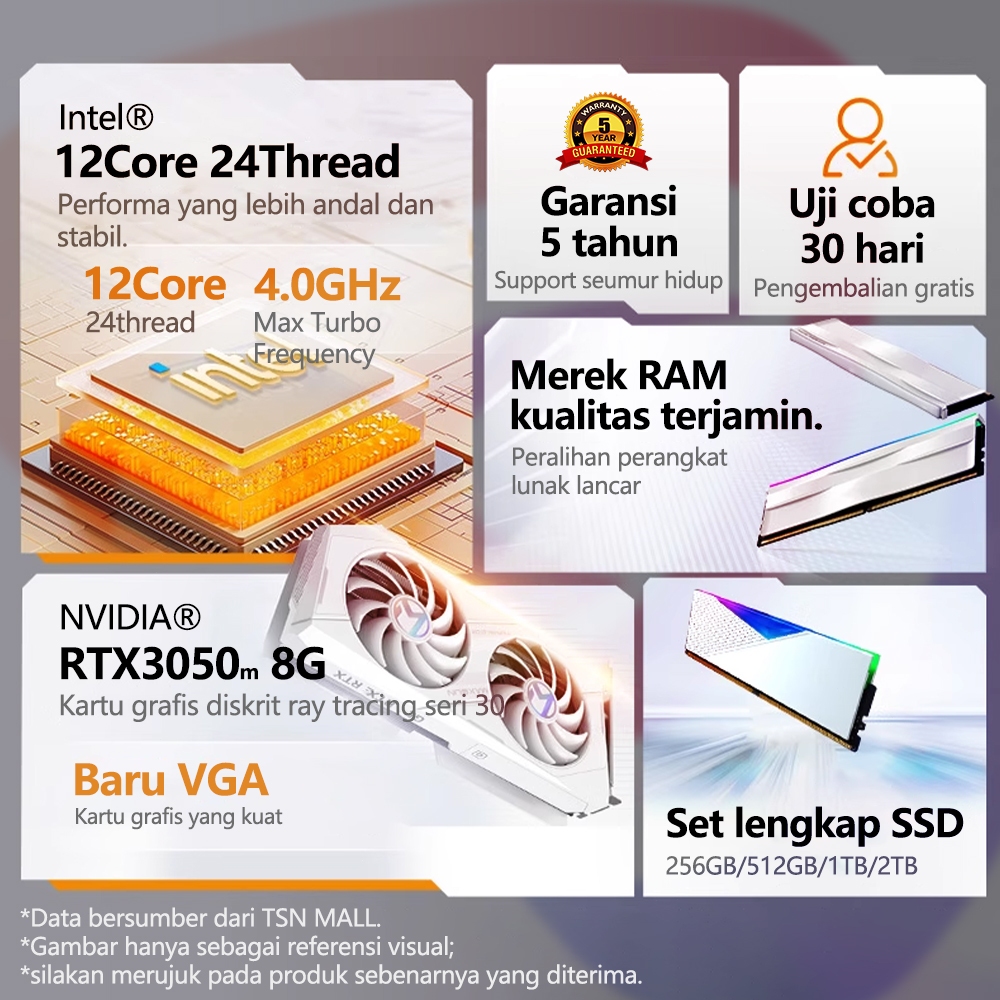 TSN PC Komputer Full Set 12-inti baru Desktop CPU Intel Core i5/i7/i9 Nvidia VGA GTX730/750 4G RTX1650 4G/3050 8G Komput