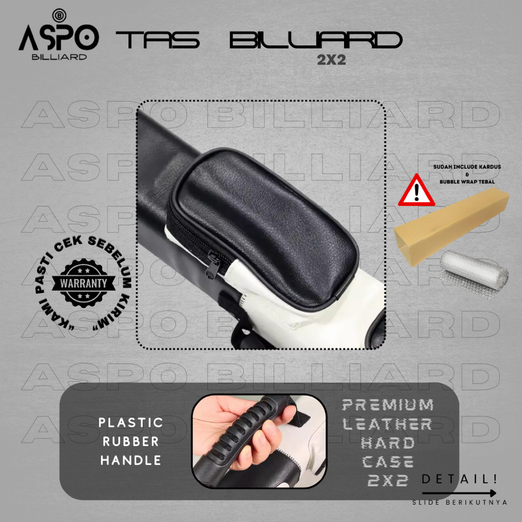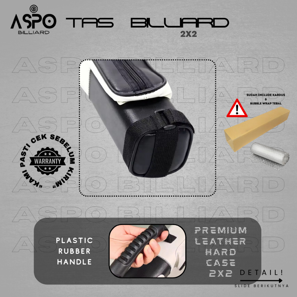 Tas Billiard 2x2 Hard Case Premium Leather Original Case / Tas Biliar Hitam Putih / Black & White Case Ball Alat