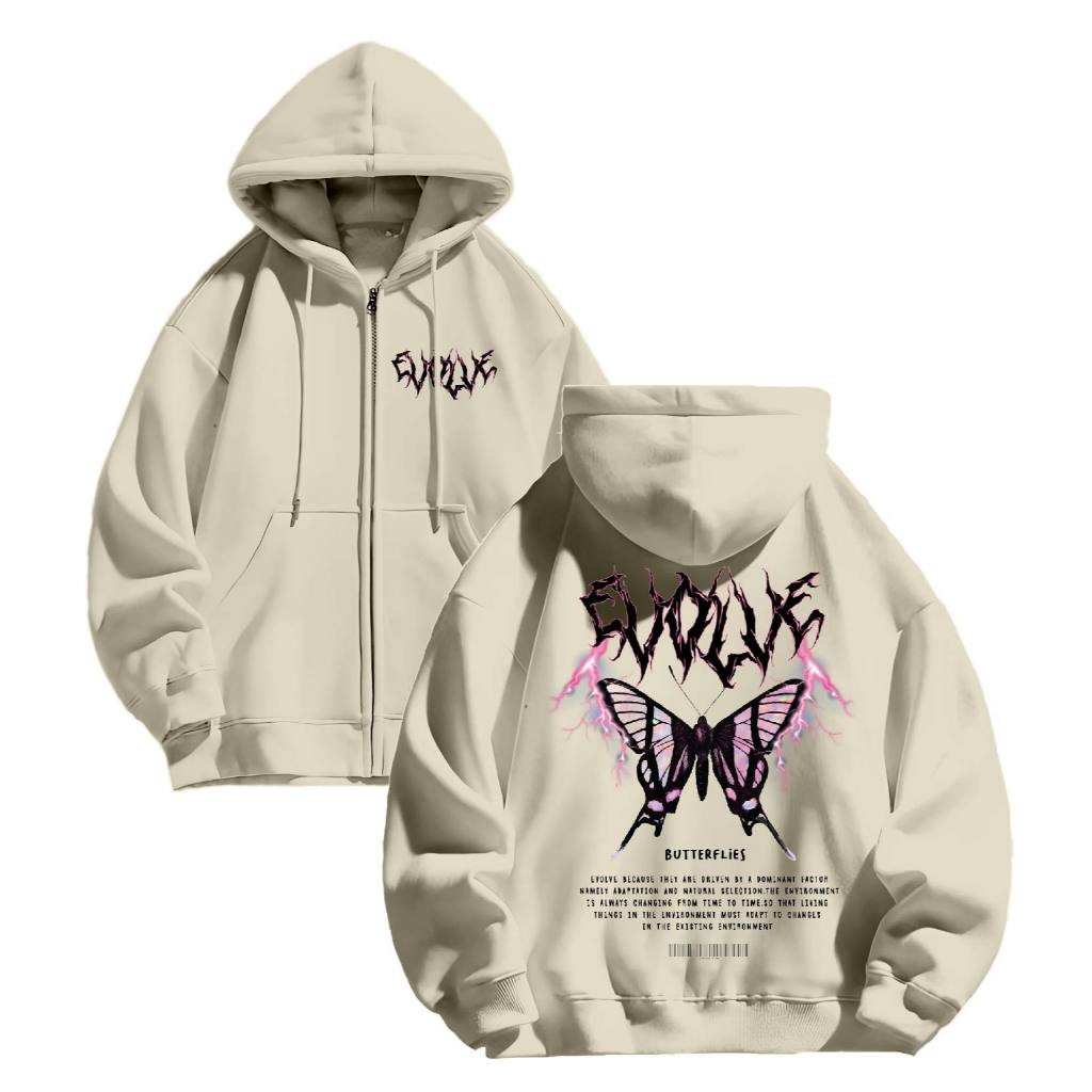 Hoodie Jaket Zipper [JYB] Oversize EVOLVE (sablon) size M XXL UNISEX pria&wanita Murah Gratis Ongkir