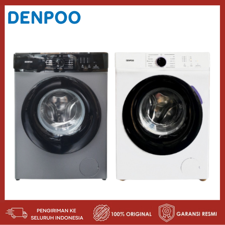 MESIN CUCI FRONT LOADING DENPOO DFL1085 KAPASITAS 9KG 8KG 1 TABUNG LAUNDRY OTOMATIS BUKAAN DEPAN GARANSI RESMI MURAH