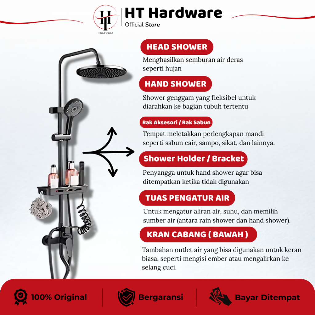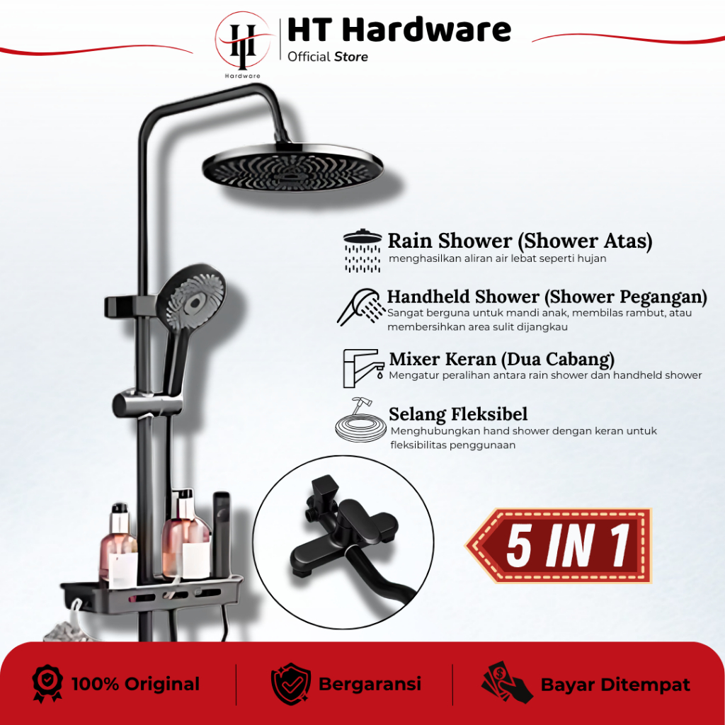 HT Hardware - Shower set Kamar Mandi 5 IN 1 Black Matte Rain Shower Set Multifungsi Stainless