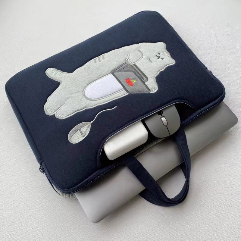 Tas Laptop Sleeve Case Tahan Guncangan Bordir Tangan Gaya Korea 13 14 15 16Inch