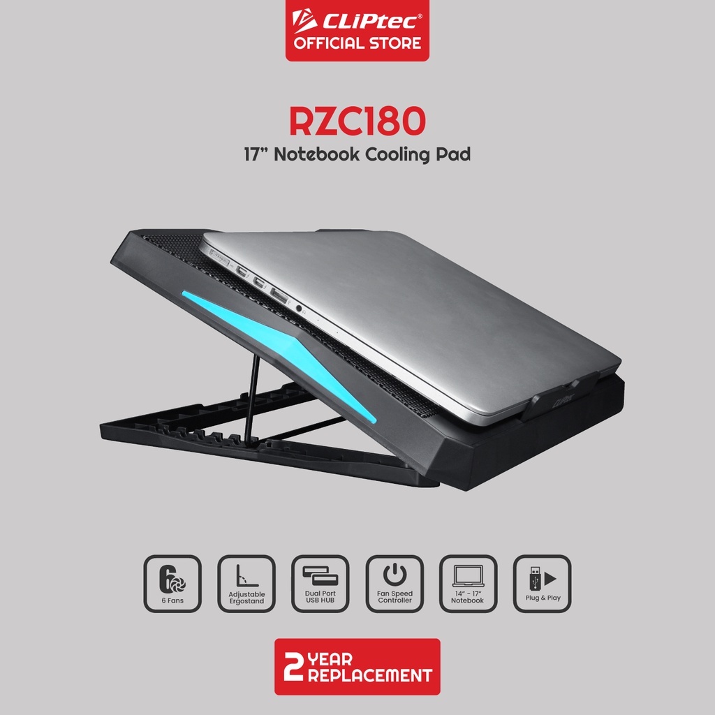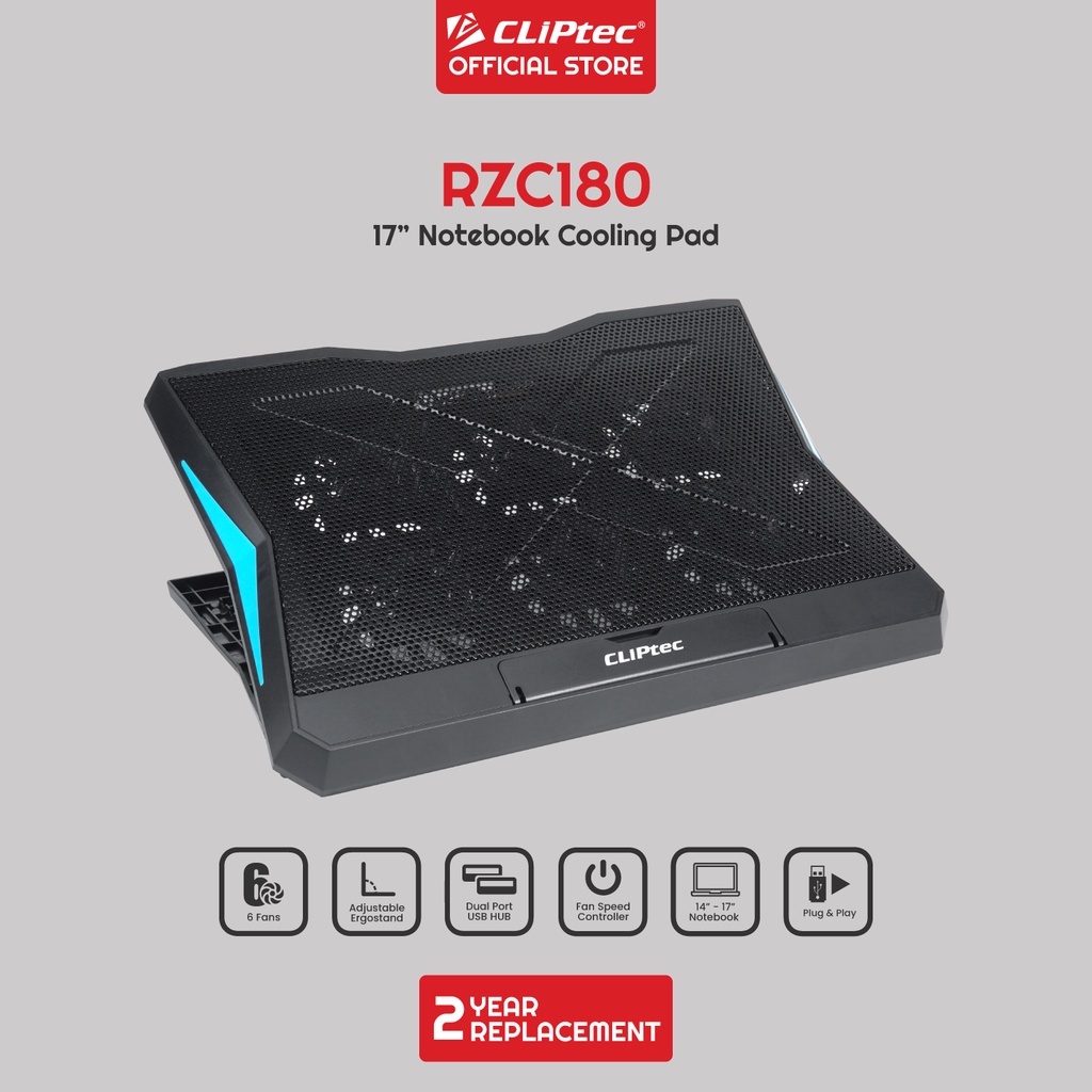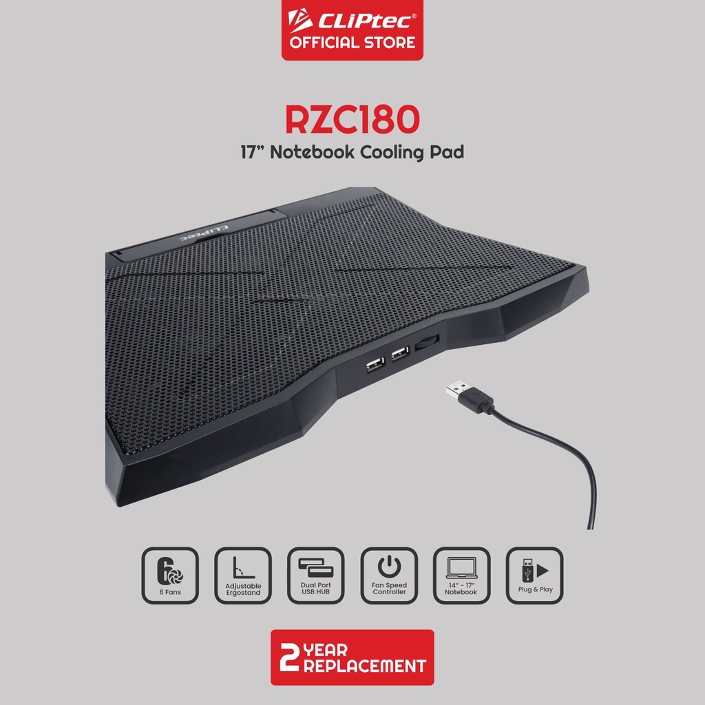 Cooling Pad Laptop 6 Fan Adjustable Ergostand 17 Inch Dual Port Usb Hub Cliptec Rzc180