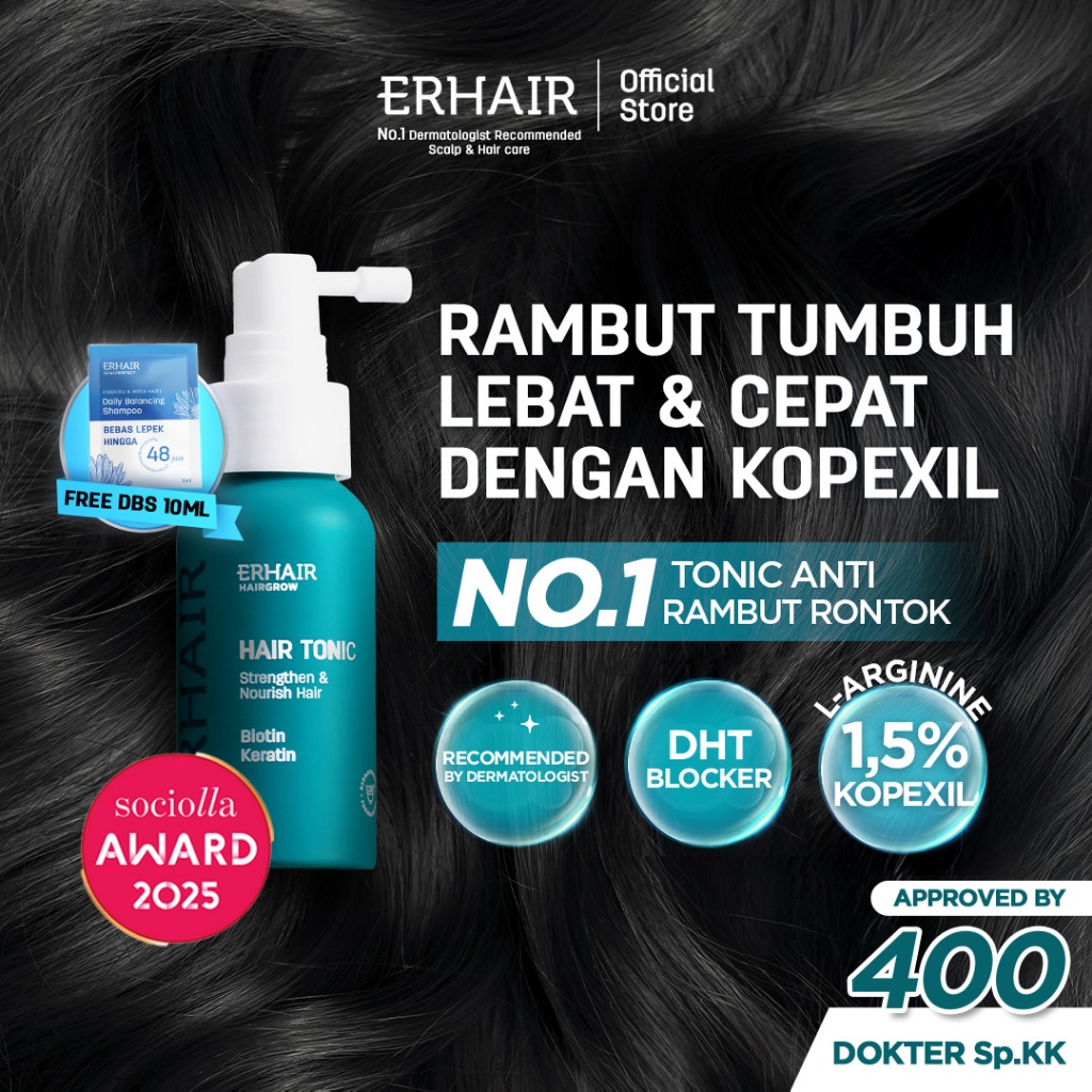 Erhair Set Anti Rontok Hairgrow Shampoo + Hair Tonic / Hair Serum Mencegah Rontok Hormonal | Dht Blocker | Panax Ginseng