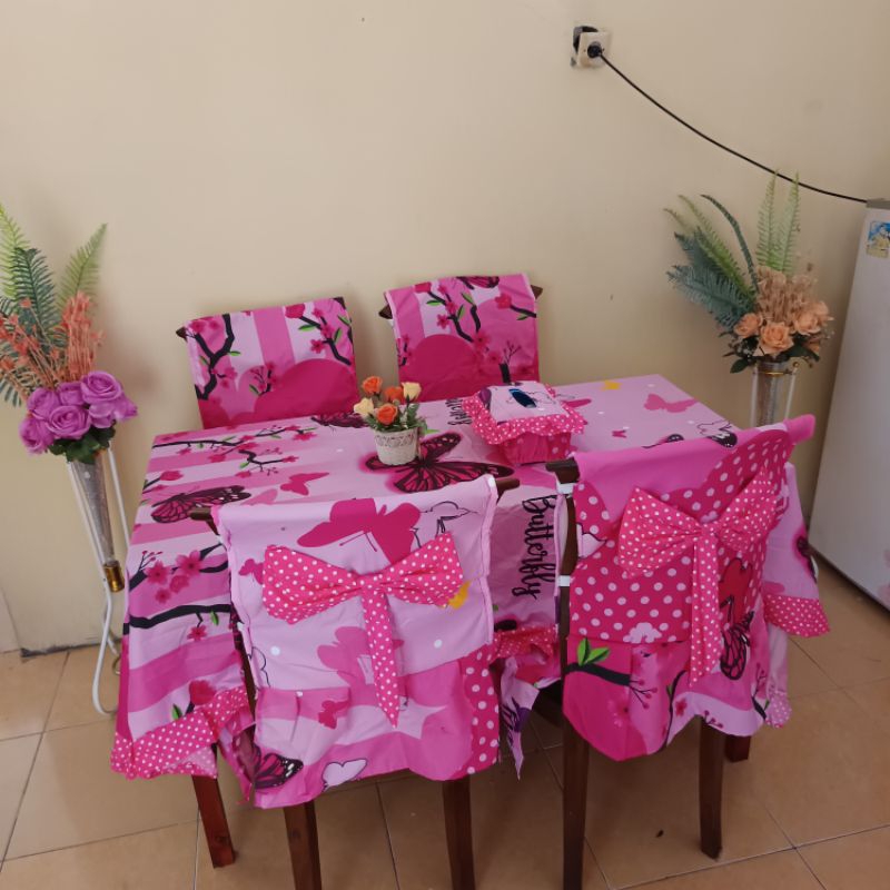 TAPLAK MEJA + COVER SET 4 KURSI LENGKAP