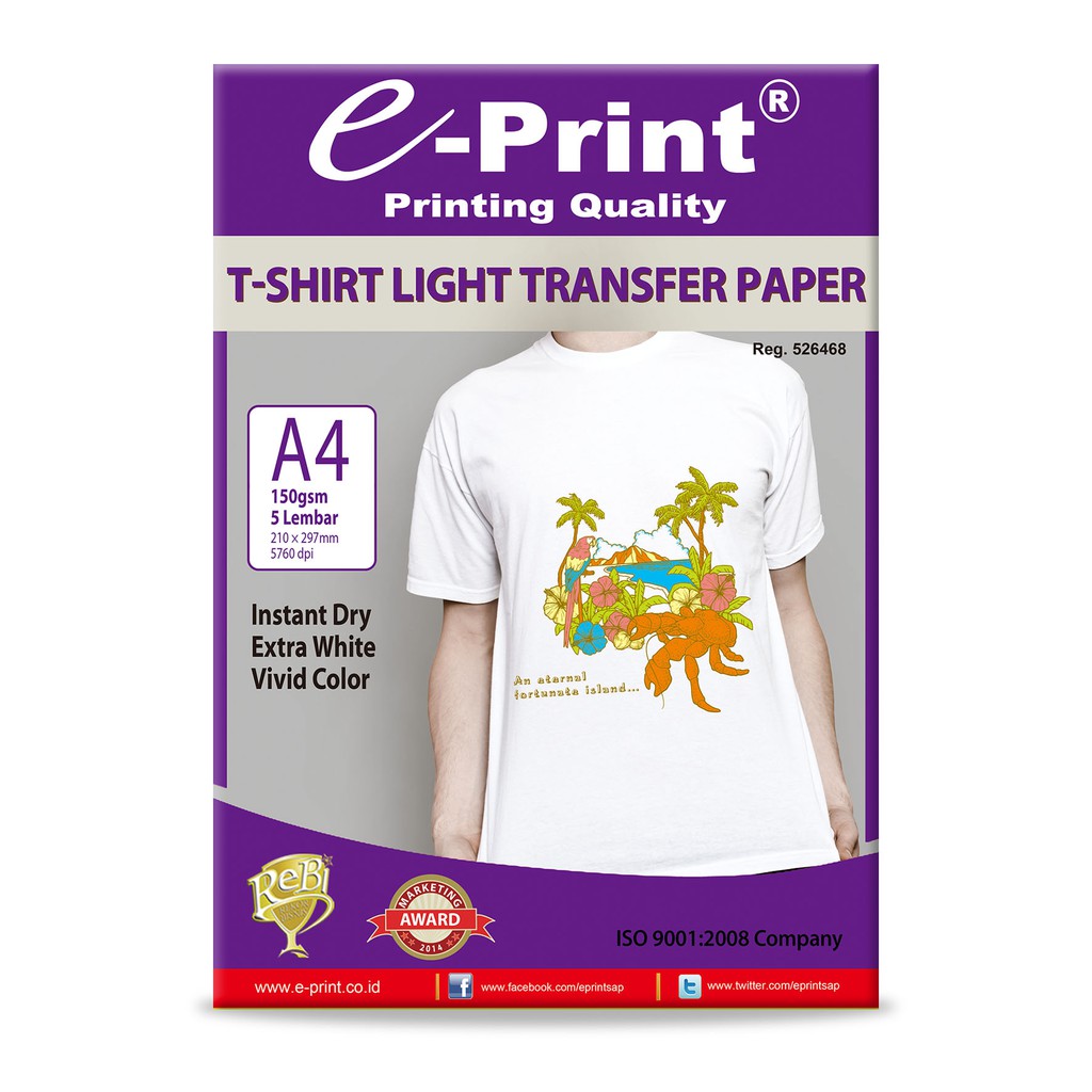 Kertas Foto Transfer Paper Light Tshirt A4 e-Print Untuk Kaos PUTIH