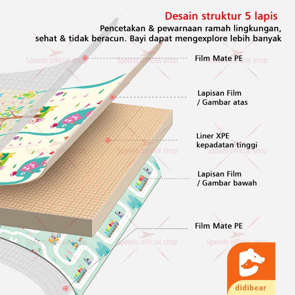 Didibear Karpet Lipat Playmat Karpet Bayi Matras Playmat Karpet Bayi Matras Tikar Lipat 200x180cm