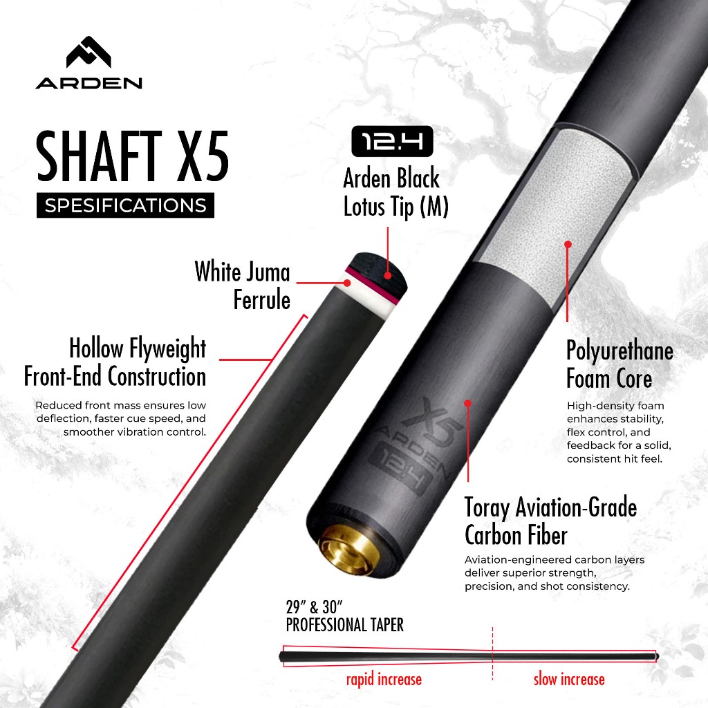 Stick Billiard ARDEN MORI - Stick High-End Inlay Turquoise Low Deflection | Shaft Maple Infused / Carbon