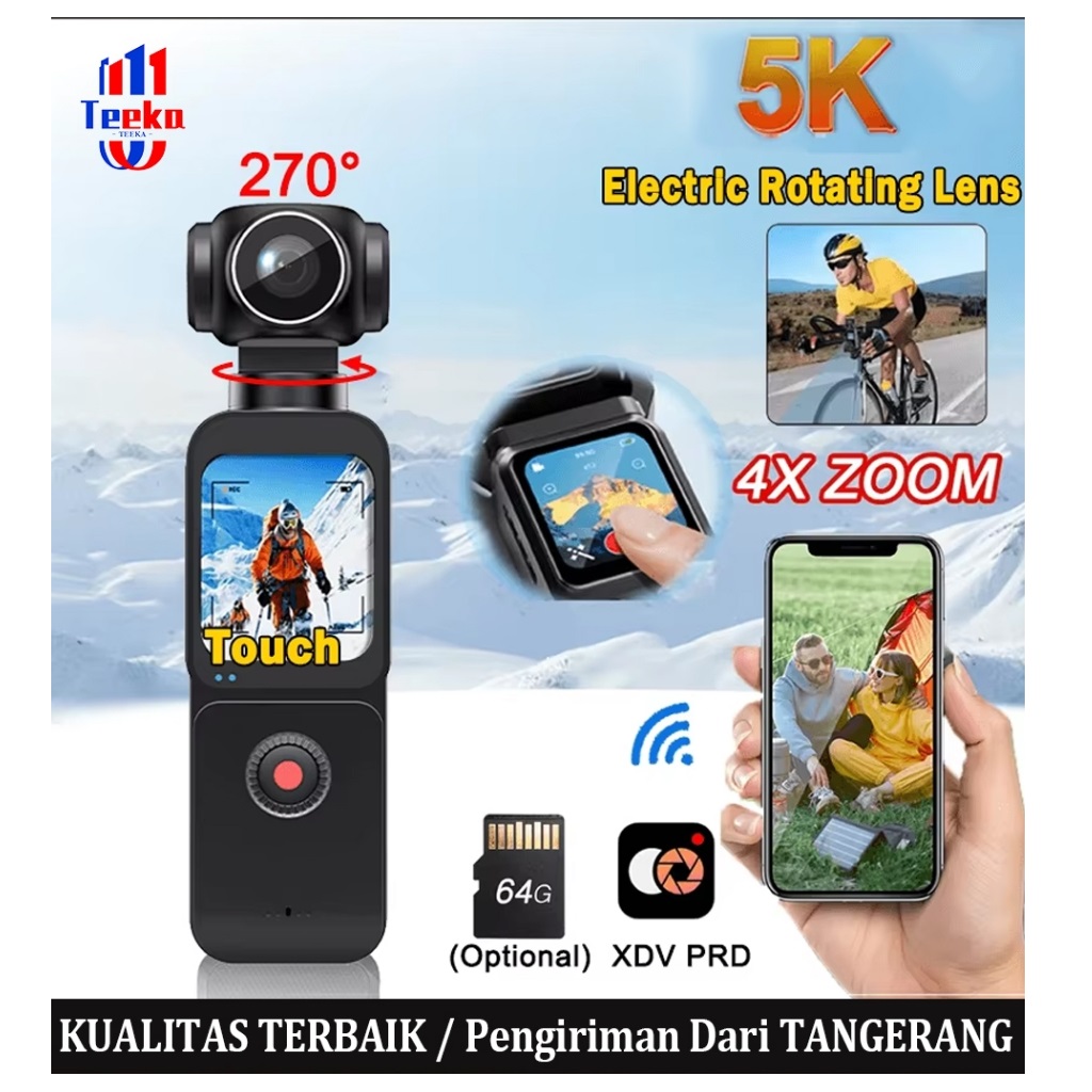 Kamera Vlog Mini TEEKA Action 2 5K Ultra Action WIFI Layar Sentuh Kamera Aksi Saku 270°