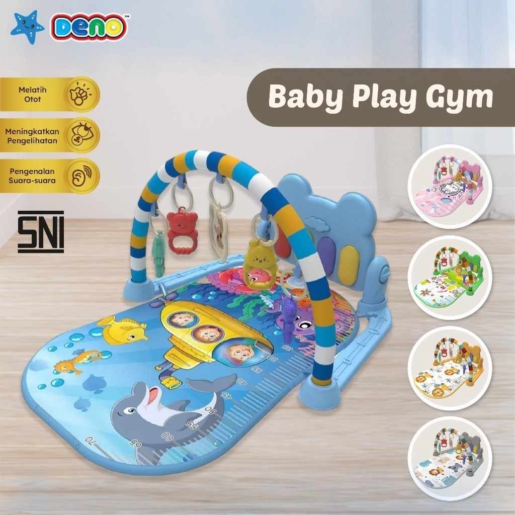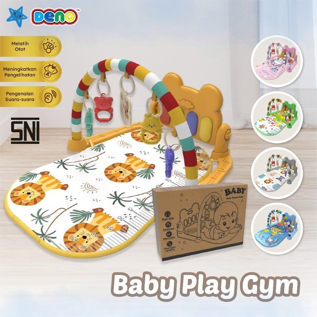 DENO Baby Playgym Piano Multi-Fungsional Rattle Playmat Sensori Playmat Bayi Motif Karakter Play Gym
