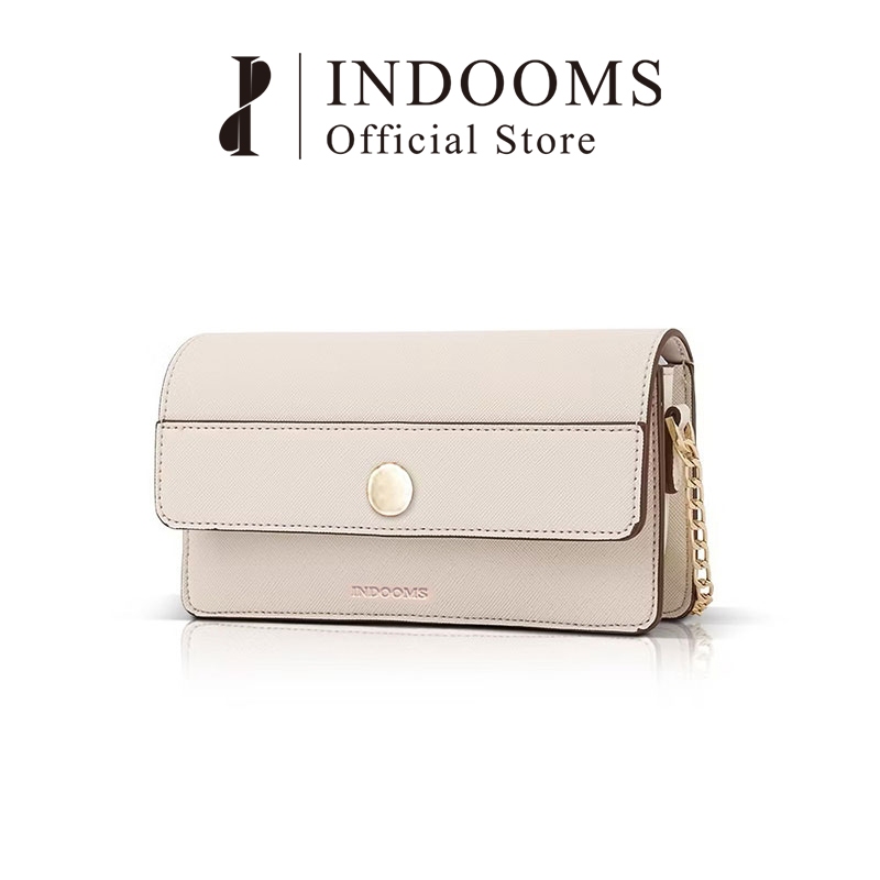 INDOOMS Tas kulit dengan penutup rantai kecil dan portabel, tas bahu, tas selempang