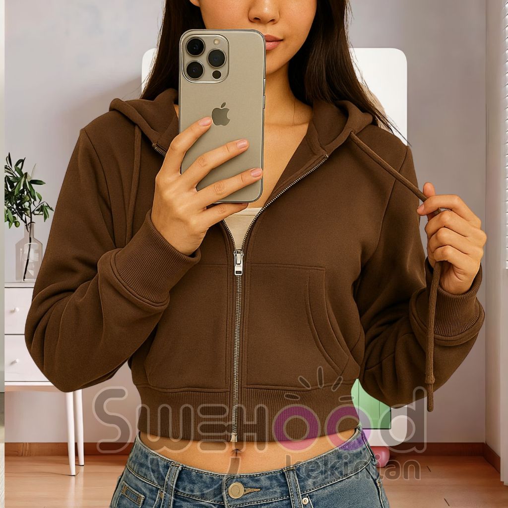 Hoodie Basic Crop Ld 110 (M L) & Ld 120 (XL) Jaket Hodie Zipper Kekinian Fashion Outfit Korean Style Murah Gratis Ongkir