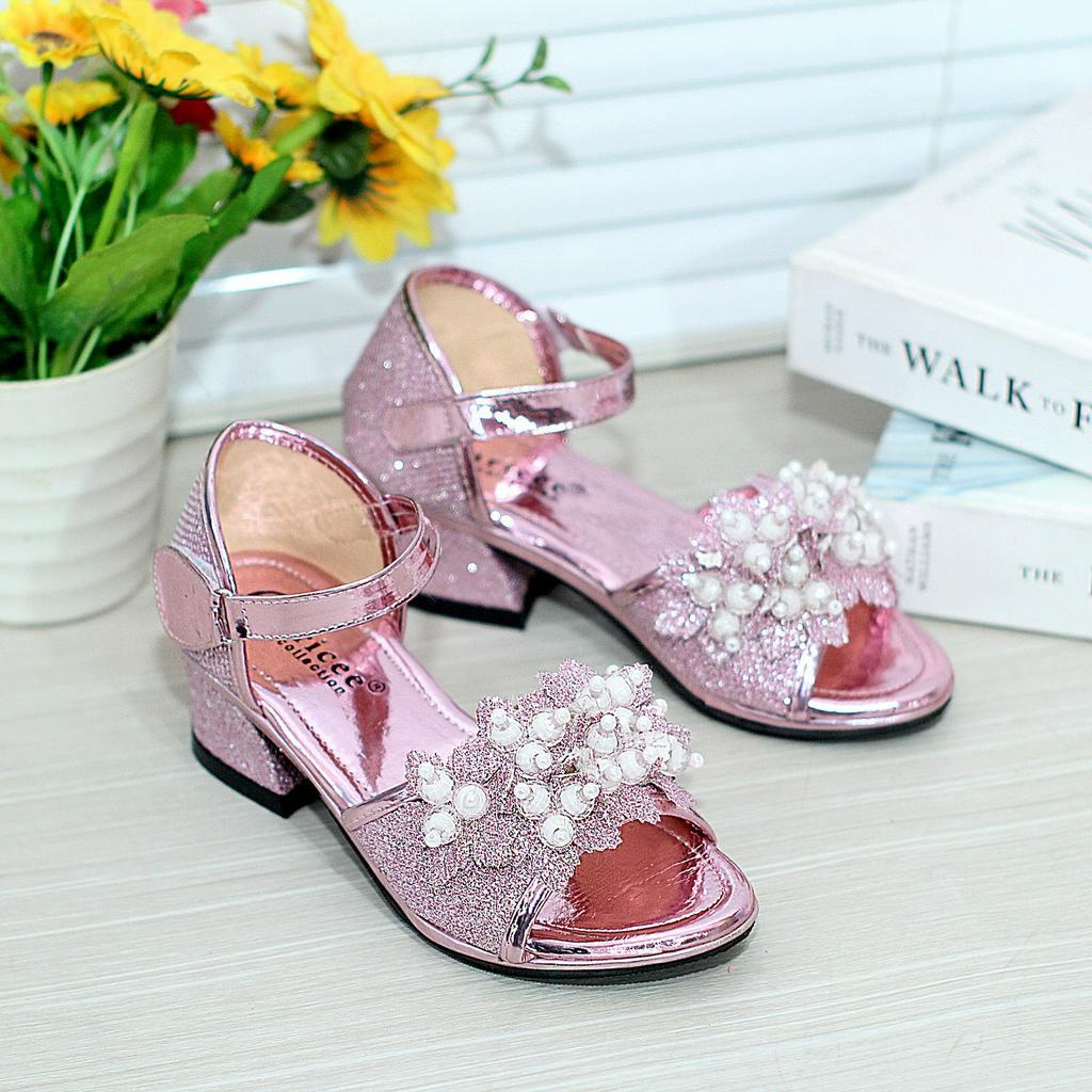 Sepatu Sandal Pesta Anak Perempuan Tali Glossy Hak Tahu 3Cm Terbaru