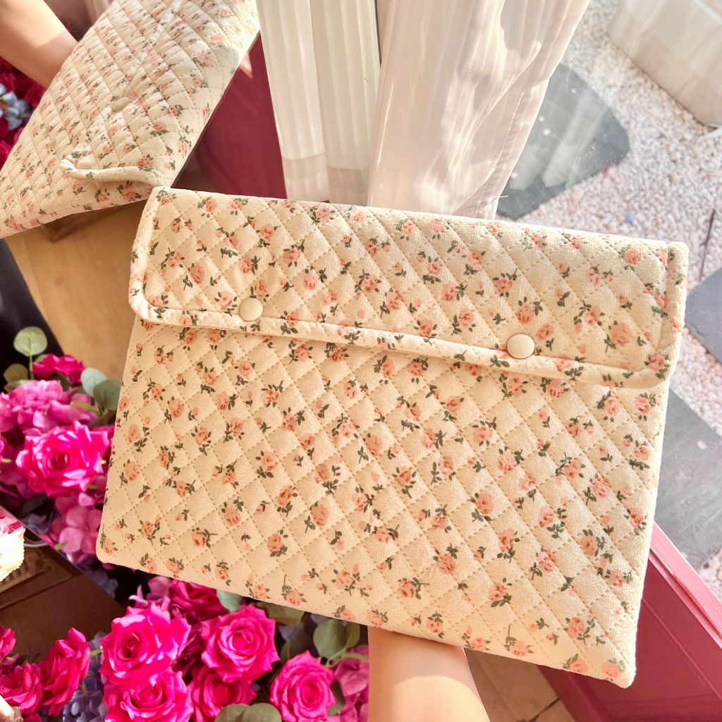 Tas Laptop Desain Asli Gaya Korea Motif Bunga Lengan Laptop Tahan Guncangan 13/14 Inch 10/11Inch
