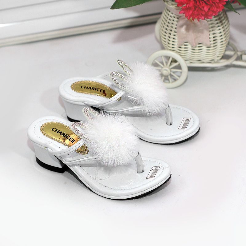 Sandal Anak Perempuan Hak Jepit Mika Bulu Pita Wl 44