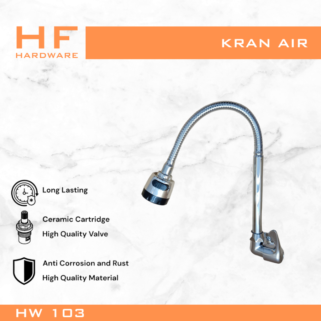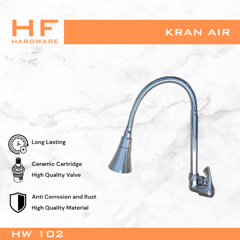 HF HARDWARE HW / HS Basic Series Kran Angsa Flexible Tanam Tembok / Meja Dapur Cuci Piring Engkol