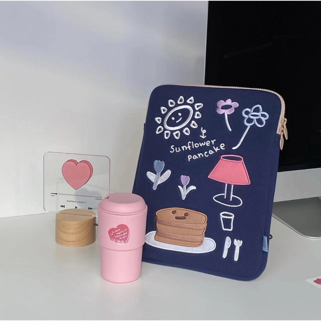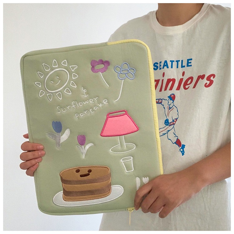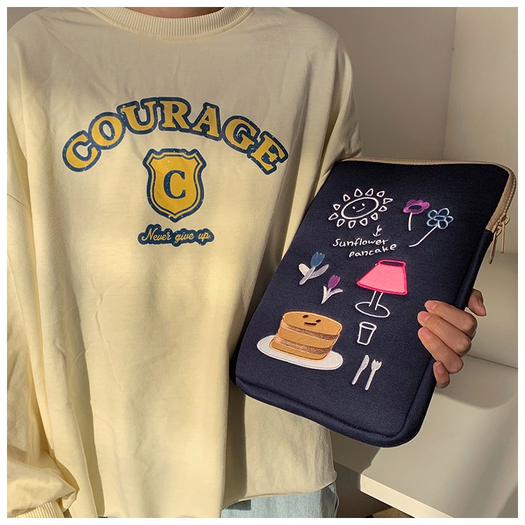 Tas Laptop Sleeve Case Tas Lengan Bordir Cantik Korea Muat Pad 10 11Inch 13-15 Inch Notebook Tipis Dan Ringan