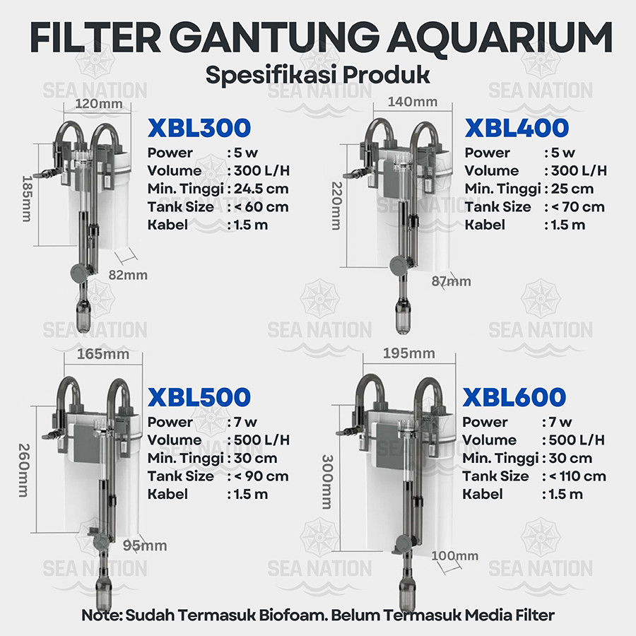 Filter XBL Series Gantung External Canister Aquarium Filter Hang On Hanging Hangon Skimmer Akuarium Aquascape Kolam Ikan