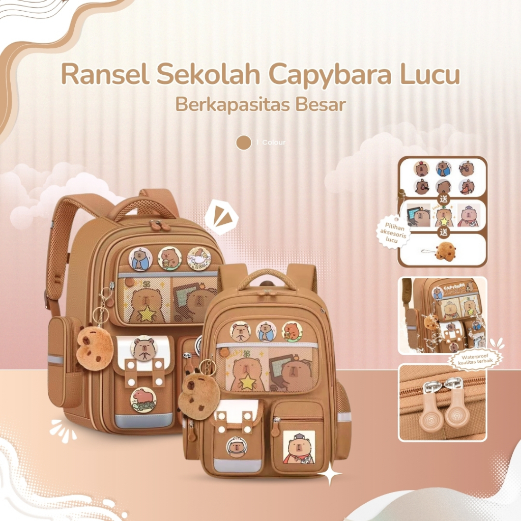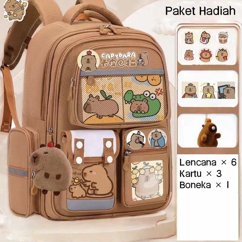 Ransel anak-anak/ransel tahan air/tas sekolah, motif kapibara - lucu dan bergaya, dilengkapi dengan lencana dan gantunga
