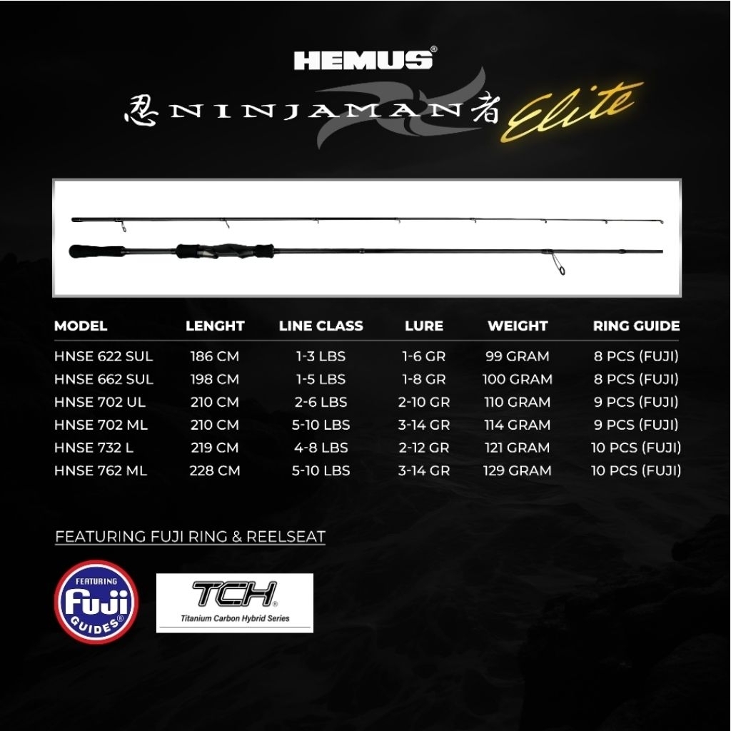 Hemus Joran UL Ninjaman Elite 622/662/702/732/762 UL Full FUJI dengan Titanium Carbon Hybrid Series dan FUJI Guides