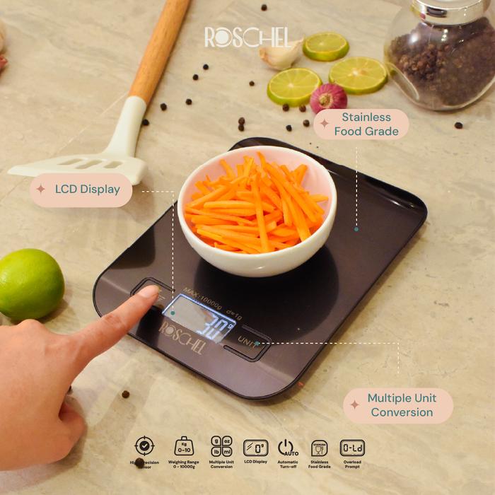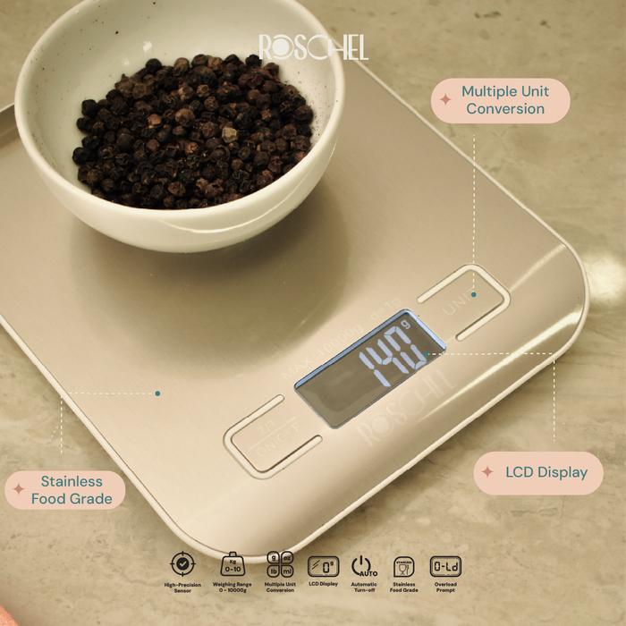 [EXCLUSIVE YULIA_HO] Roschel Timbangan Dapur Digital10 KG Silver Rose Gold Black Stainless - SILVER