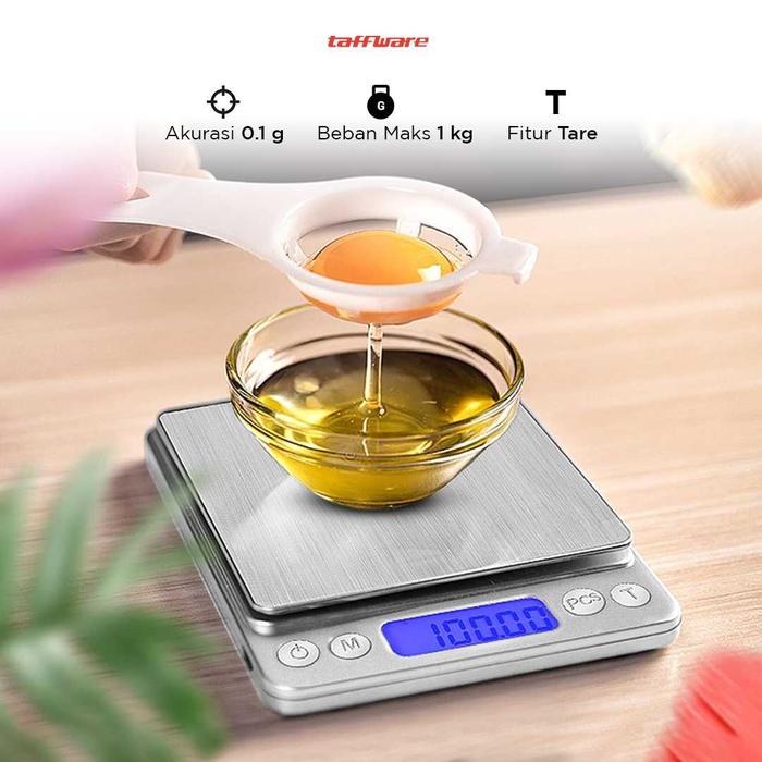 Taffware Digipounds Timbangan Dapur Digital 1kg Akurasi 0.1g - i2000 - Silver Standar