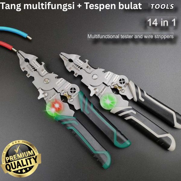 Tang Multifungsi 14 in 1 Tespen Bulat Pengupas Dekrustasi Anti Shock Bahan Krom dengan Fungsi Pengukuran Arus Listrik