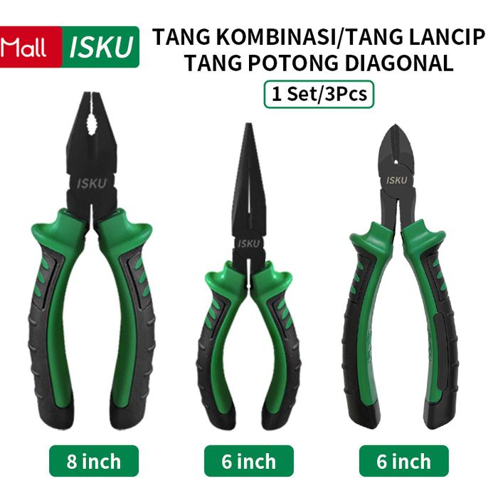 PROMO ISKU Tang Set 3 Pcs Tang Kombinasi Dan Tang Lancip Dan Tang Potong 6 Inch Pliers Set - 6+6+6 inch