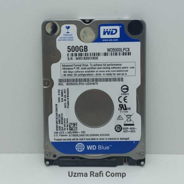 Hardisk LAPTOP, NOTEBOOK, PS, GAME WD BLUSATA HDD Internal 500GB/1TB 2.5" sentinel100