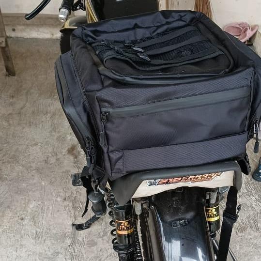 Tas Touring Jok dan Tangki Motor Waterproof Hitam Lengkap dengan Cover Hujan Muat Banyak untuk