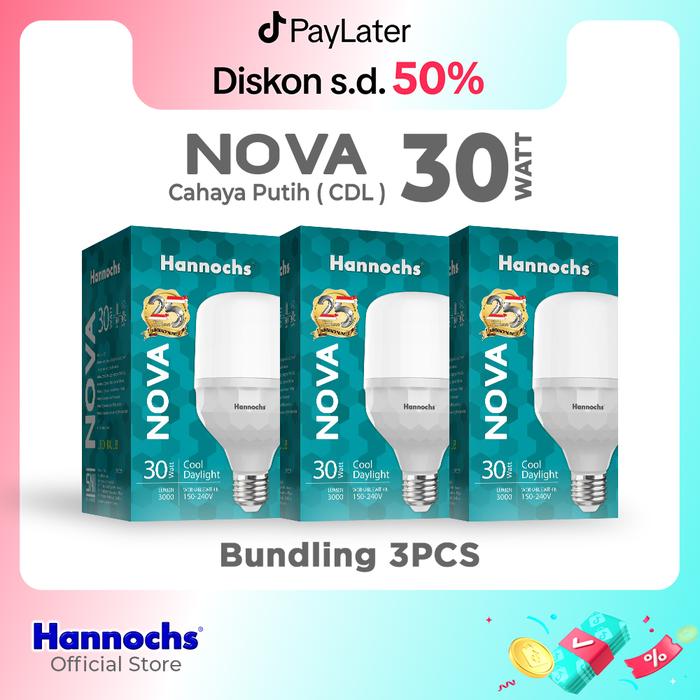 Hannochs Lampu Bohlam LED Nova 30W Cahaya Putih ( PAKET 3pcs ) - Garansi 1 Tahun - Putih
