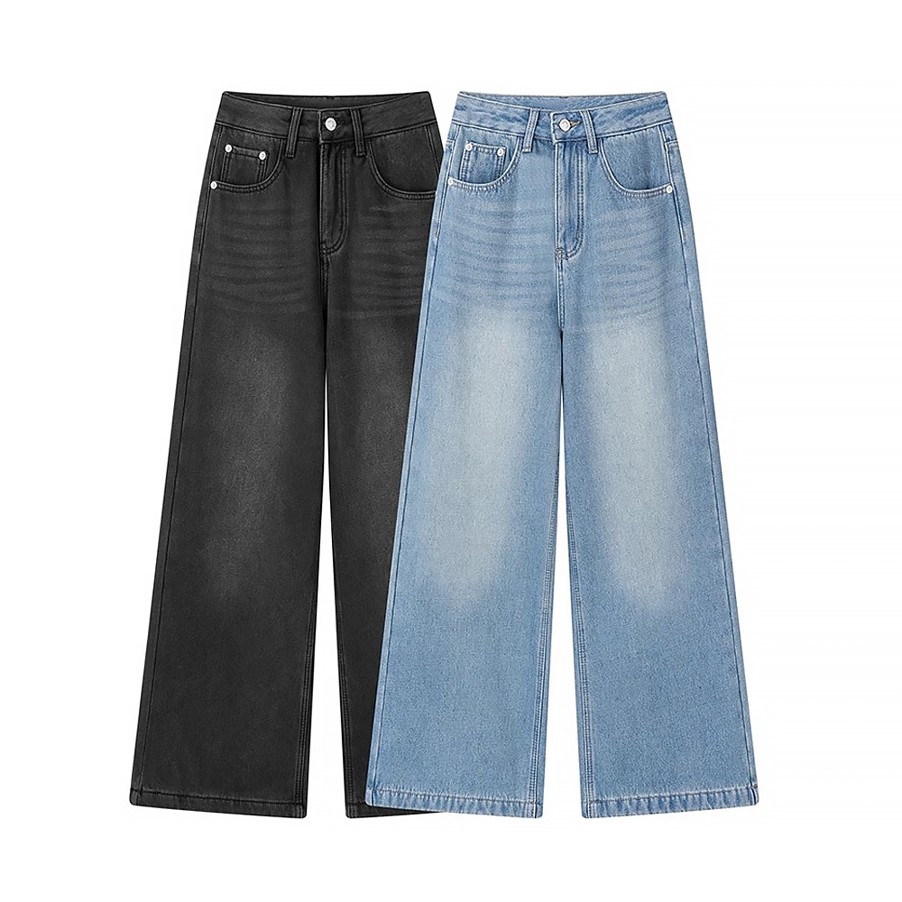 Keygirl Celana Baggy Jeans Wanita Sekena Korean Style Gombrong Highwaist Kulot jeans Loose Hitam biru Permium Murah Grat