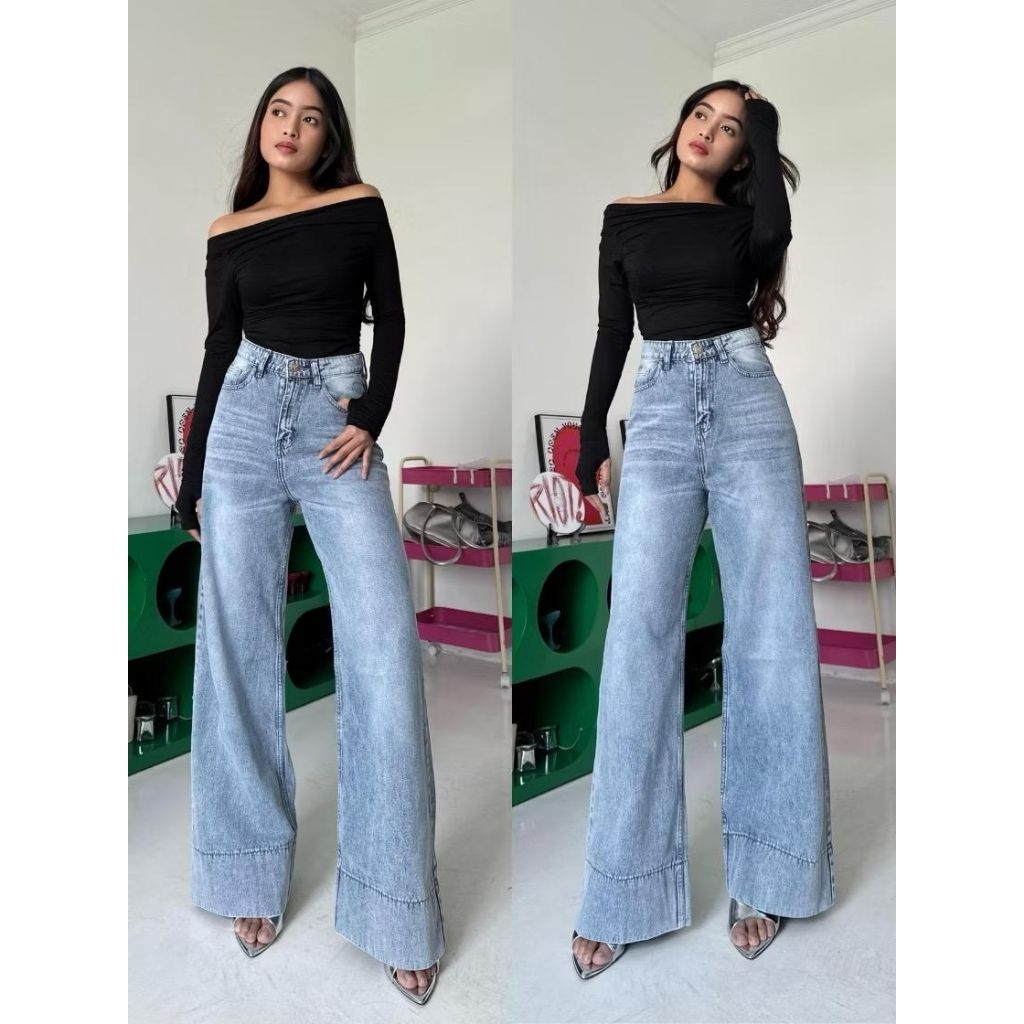 TheGirlHouse JVC HIGH WAIST BAGGY JEANS CELANA PANJANG DENIM WANITA Murah Gratis Ongkir