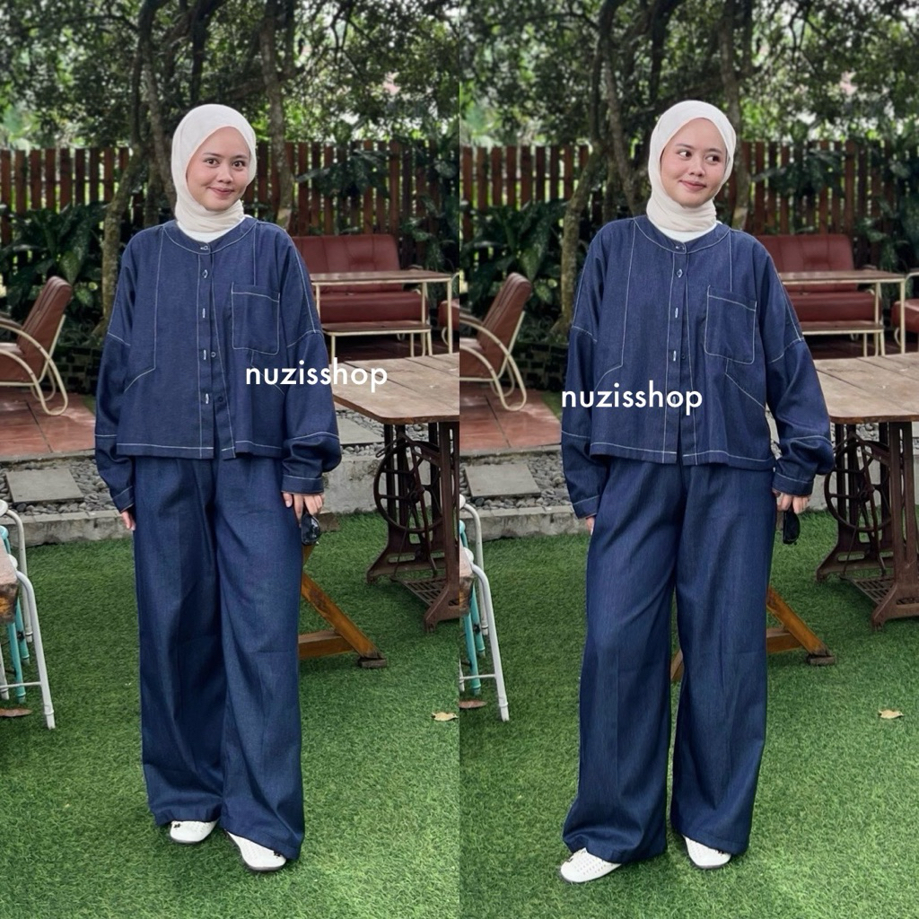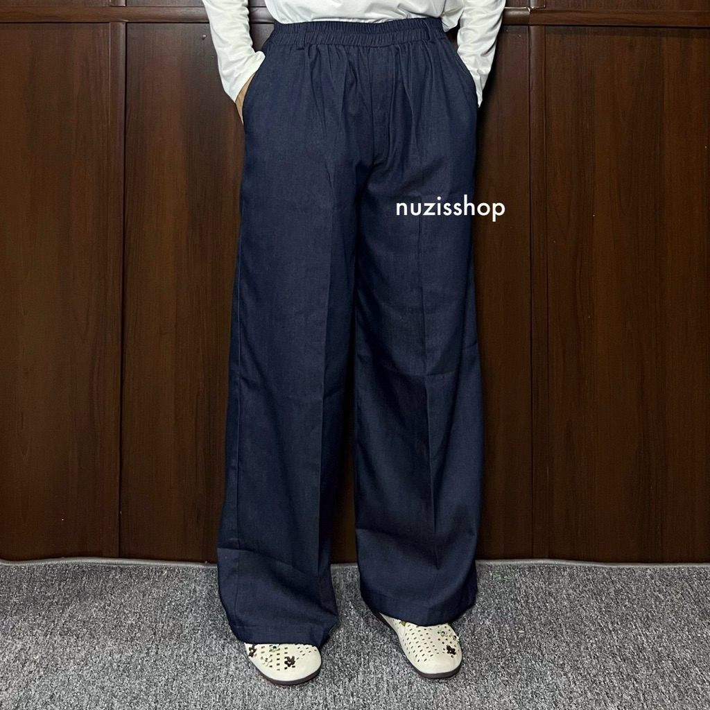 NUZI Nara Pants Katun Denim Premium Kulot Highwaist Baggy Celana Longgar Korean Style Murah Gratis Ongkir
