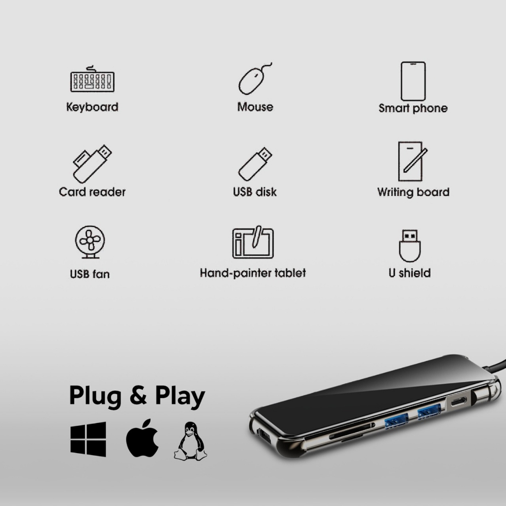 Uneed Usb Hub Type C To Hdmi Thunderbolt 3 Usb 3.0 Pd 60W - Uuh204C