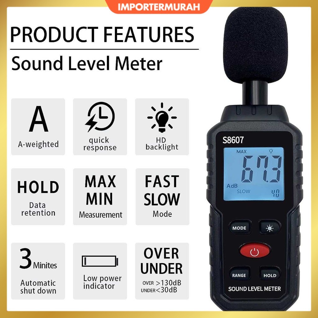 Sound Noise Level Meter Digital Alat Pengukur Suara 30-130dB - S8607