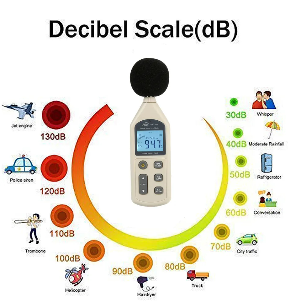 Benetech GM-1356 1352 Digital Sound Level Meter Kebisingan Suara Audio Vioce Tester Meter GM1356 30-130dB A/C Cepat/Lamb