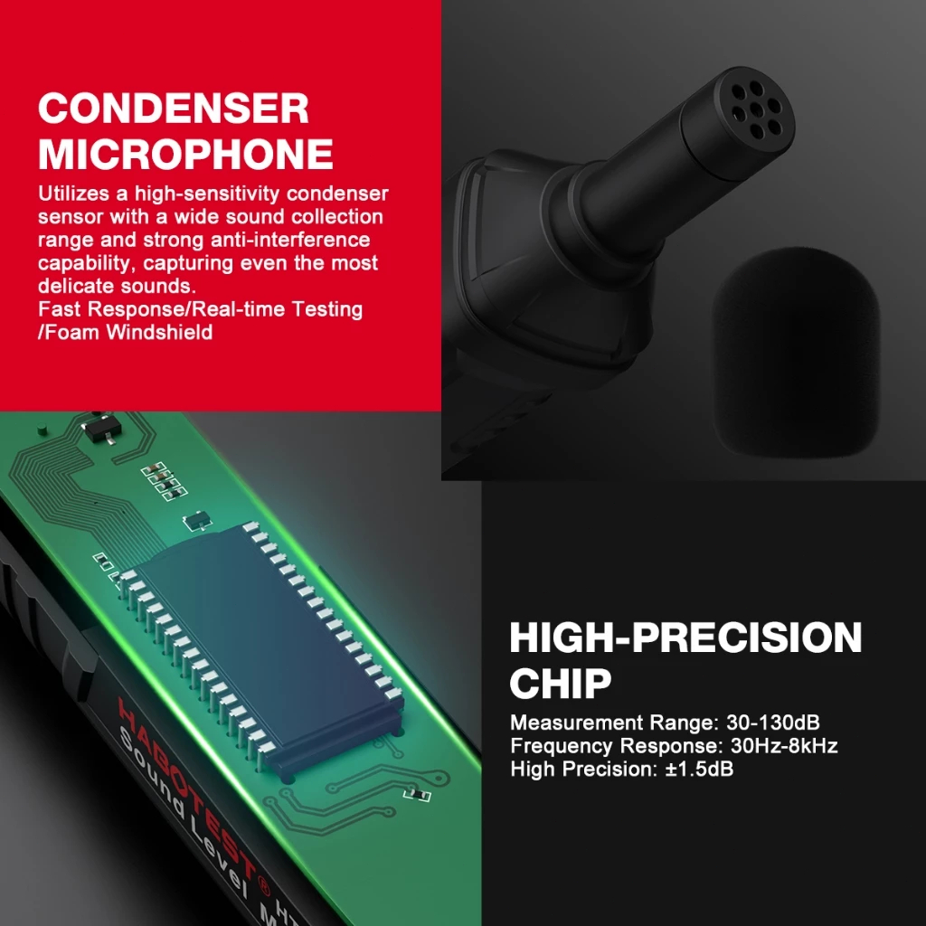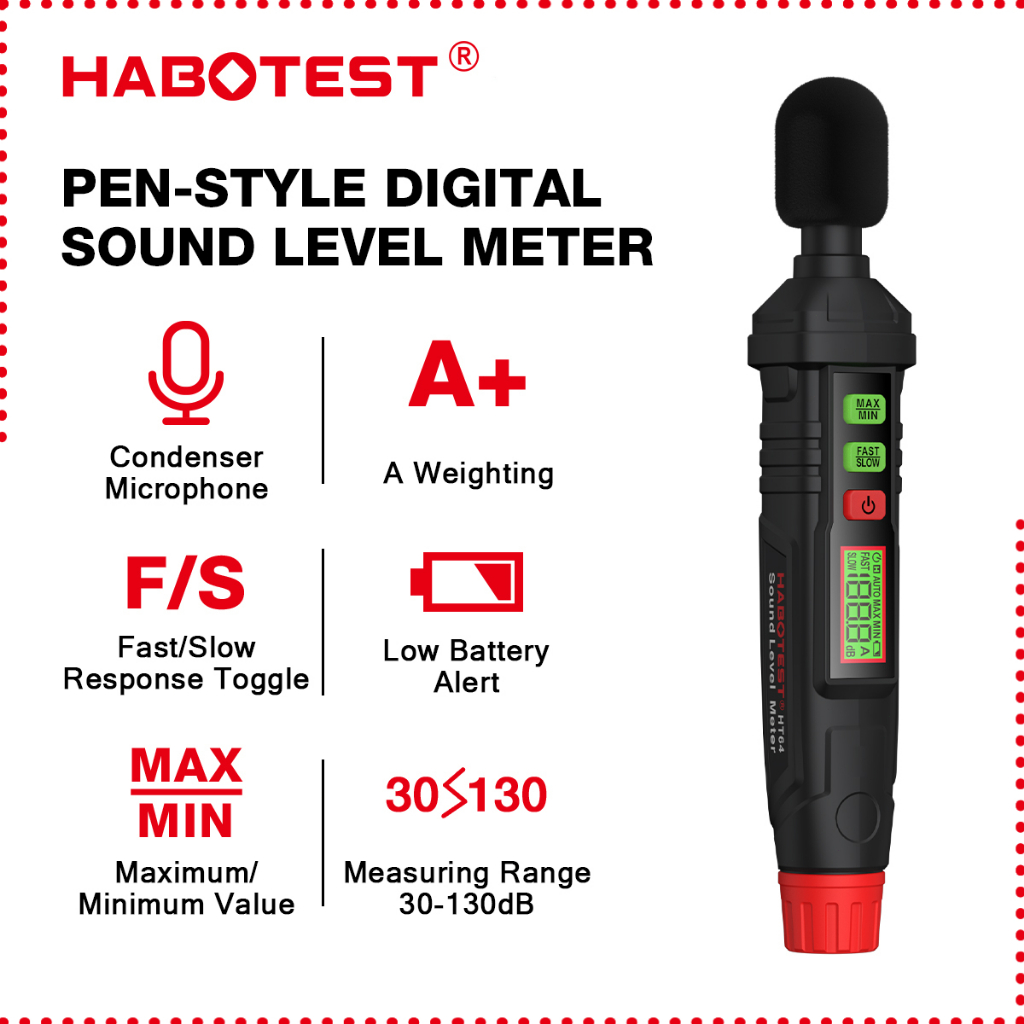 HABOTEST HT64 Penguji Pemantauan Desibel Meteran Tingkat Suara Digital Mini 30-130dBA Pengukur Kebisingan Pengukur Volum
